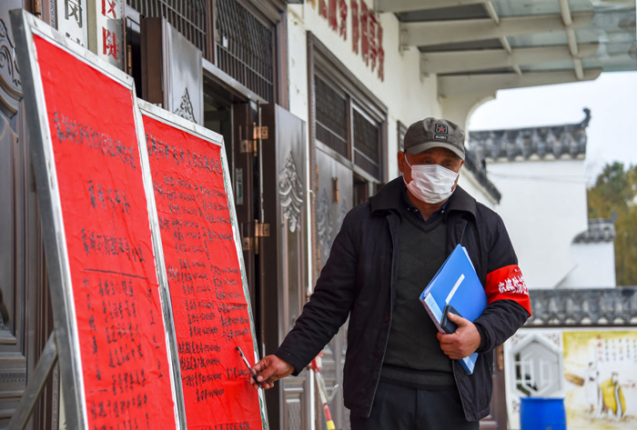 除夕。袁湖村給全體村民免費(fèi)發(fā)口罩,一人一個(gè)。全村有14戶“新香”(按當(dāng)?shù)仫L(fēng)俗,親屬到當(dāng)年去世的人墳前上香)家庭,全部取消“新香”活動(dòng)。他還要求:“明天大年初一,不要相互拜年,不要串門?!?/p>