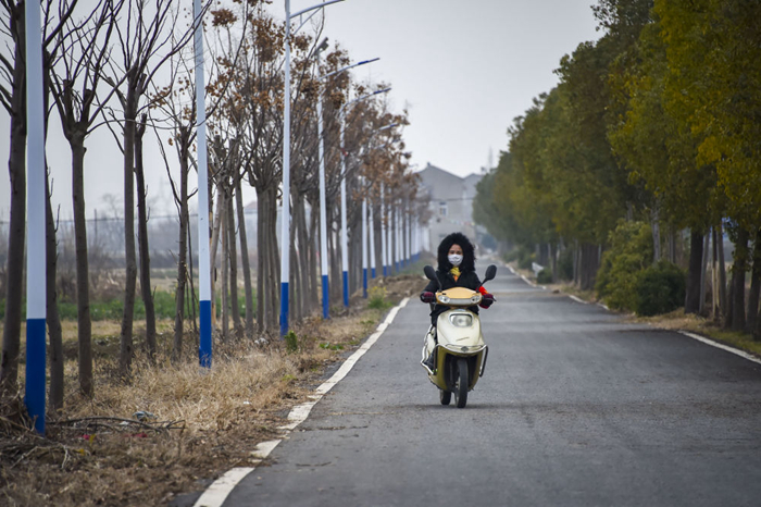 ↑袁湖村的鄉(xiāng)間道路上,少有村民出行。新華社記者 胡虎虎攝