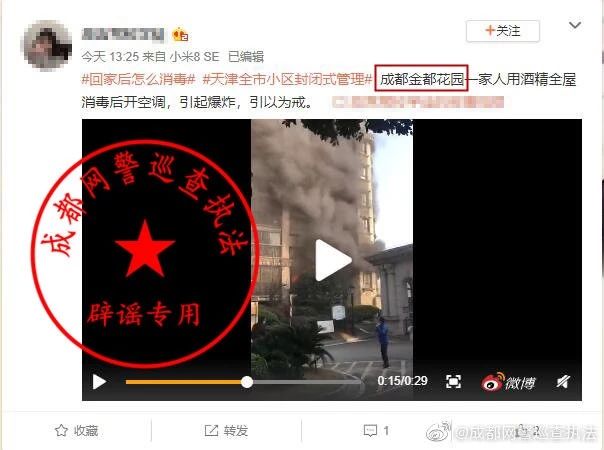 各地消防、網(wǎng)警部門辟謠:上述地區(qū)均未發(fā)生相關(guān)火情。事實(shí)上,視頻中的火災(zāi)2月5日發(fā)生在江蘇句容,起火原因也并非是噴灑酒精后開空調(diào)。