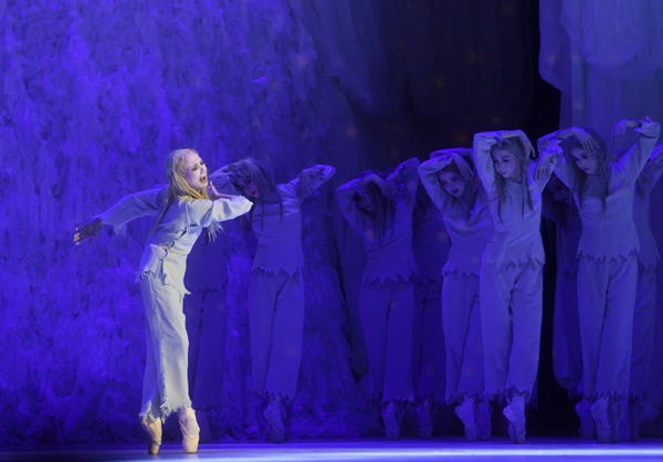 2017年5月19日,日本松山芭蕾舞團(tuán)在北京人民大會(huì)堂演出《白毛女》。這是該團(tuán)第15次訪華演出。該團(tuán)團(tuán)長、第二代白毛女扮演者——69歲的森下洋子在劇中飾演“喜兒”。新華社記者金良快攝