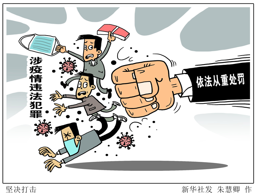 執(zhí)法司法的鐵面莊嚴(yán),彰顯庇佑民生的溫情。在疫情防控期間實(shí)施有關(guān)違法犯罪的,政法機(jī)關(guān)作為從重情節(jié)予以考量,依法體現(xiàn)從嚴(yán)的政策要求。 疫情發(fā)生以來,全國公安機(jī)關(guān)查處擾亂社會秩序類案件377起,干擾疫情防控類案件83起,妨害公務(wù)類案件55起;破獲非法獵捕珍貴野生動物、非法狩獵等刑事案件19起,抓獲犯罪嫌疑人29名;破獲涉疫情詐騙案件1116起,抓獲犯罪嫌疑人294名,追繳贓款660余萬元…… 新華社發(fā) 朱慧卿 作