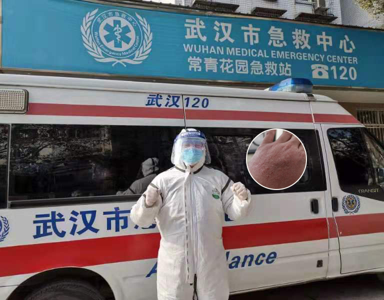 徐迪在救護車前大喊武漢要挺住、武漢加油