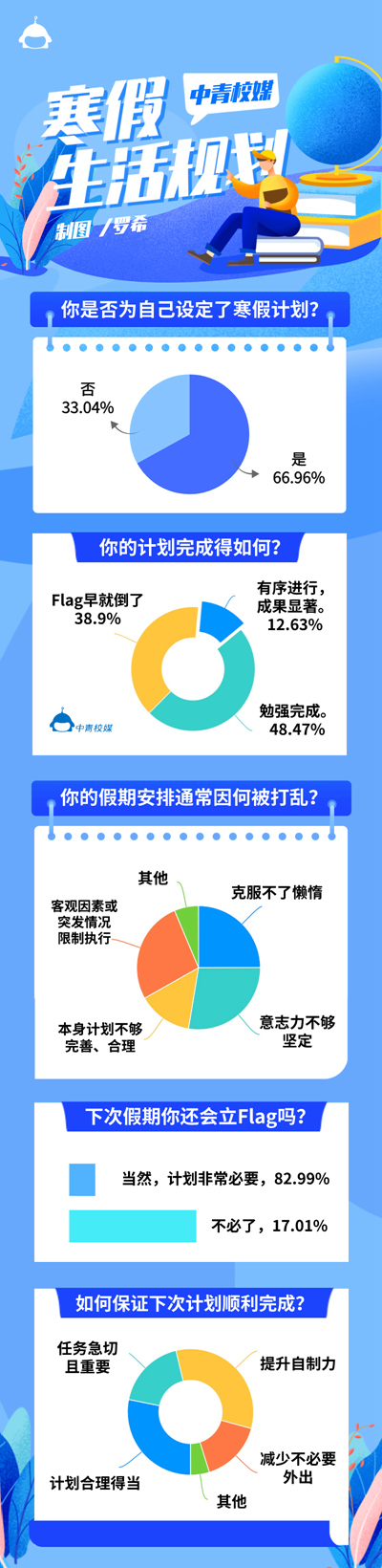 中青校媒調(diào)查顯示,在落實(shí)假期計(jì)劃時(shí),意志力不夠堅(jiān)定(63.19%)、客觀因素或者突發(fā)情況(62.36%)、克服不了懶惰(57.88%)、計(jì)劃本身不夠合理(33.06%) 等因素都會(huì)干擾計(jì)劃的執(zhí)行。