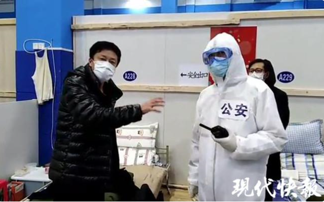 一個(gè)是執(zhí)勤民警,一個(gè)是新冠肺炎感染者,父子倆,在方艙醫(yī)院里不期而遇。2月14日,武漢江岸方艙醫(yī)院剛啟用不久,陸續(xù)收治病人,方艙醫(yī)院民警突擊隊(duì)的王桓峰正在執(zhí)勤,偶然間,一個(gè)熟悉的面孔出現(xiàn)在他的面前,“這不是父親嗎?”原來,剛剛確診不久的父親,恰巧被收治在兒子執(zhí)勤的方艙醫(yī)院。