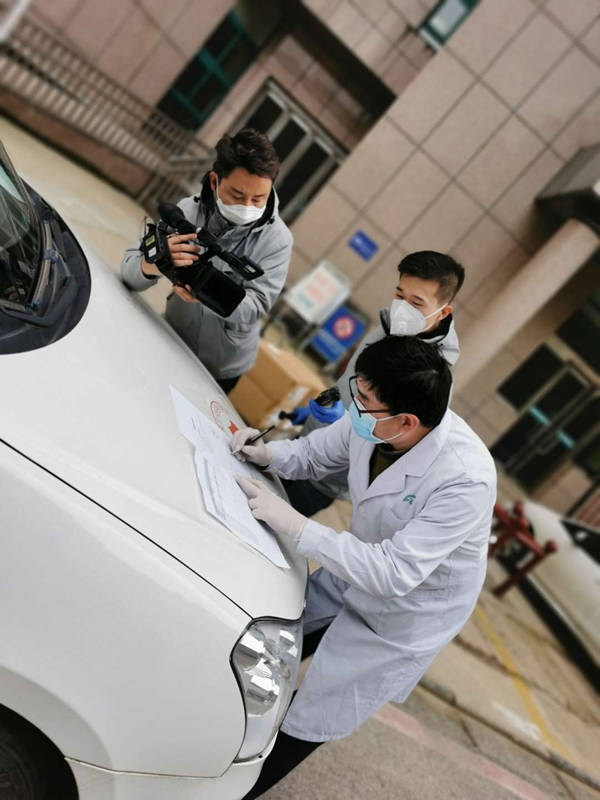 中央電視臺(tái)國際頻道跟拍志愿者給四醫(yī)院和兒童醫(yī)院分配物資,醫(yī)生正在簽字確認(rèn)。
