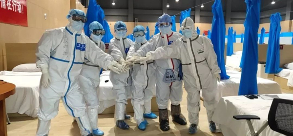 2月14日,第三支國家中醫(yī)醫(yī)療隊(duì)正式進(jìn)駐武漢江夏方艙醫(yī)院,陜西中醫(yī)藥大學(xué)第二附屬醫(yī)院的全部9名隊(duì)員都上陣工作,打頭陣值第一班的是隊(duì)里的何躍(總務(wù))、孫小敏(護(hù)士)、朱明明(護(hù)士),她們從下午3點(diǎn)一直工作到晚上9點(diǎn)。