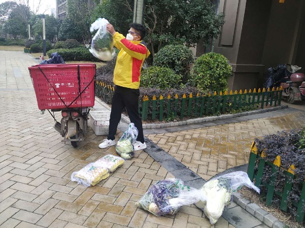 “年后,我有一位住在洪山區(qū)九里小區(qū)的朋友和說(shuō),九里小區(qū)90%以上的業(yè)主都因?yàn)榫蛹腋綦x,導(dǎo)致嚴(yán)重缺乏生活用品,有時(shí)做飯都需要去鄰居家借米和面?!边@番話觸動(dòng)了小楊,“聽(tīng)到之后覺(jué)得很心酸,當(dāng)時(shí)就想,我一個(gè)剛畢業(yè)的大學(xué)生,年輕有勁,就過(guò)去做一些自己能做的事情?!?/p>
