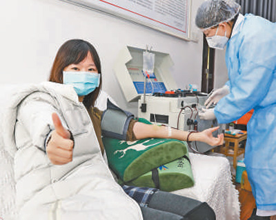 近日,武漢市江夏區(qū)中醫(yī)醫(yī)院醫(yī)務(wù)工作者吳芬在捐獻(xiàn)血漿。