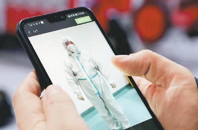 張欣正在看他的父親——復(fù)旦大學(xué)附屬上海浦東醫(yī)院呼吸科發(fā)熱門診醫(yī)生張弢從抗疫一線發(fā)來的短視頻。