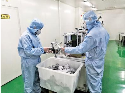 8時(shí)10分,春陽(yáng)燦燦,剛下夜班的趙造柱一臉倦容,他捶著腿憨厚地笑道:“這班生產(chǎn)了6000多只N95口罩,站了一宿,腿有點(diǎn)酸疼?!?/p>