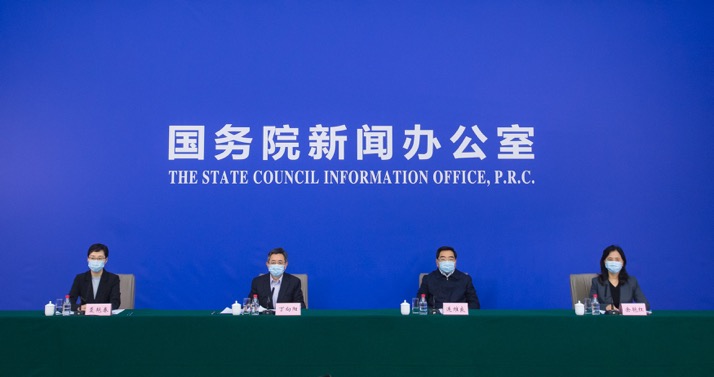 三位中央指導(dǎo)組成員出席國(guó)新辦發(fā)布會(huì)。新華社記者肖藝九攝。