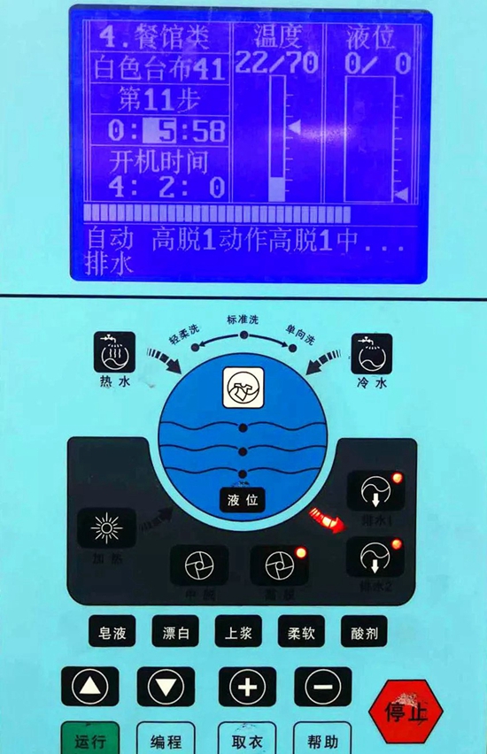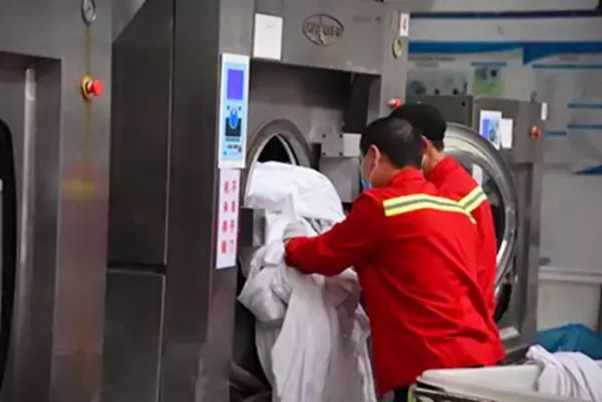 一套臥具要經(jīng)過11道洗滌消毒工序,過程中設備會自動加熱,溫度逐步加熱至80攝氏度,在這樣的恒定高溫下要足足轉(zhuǎn)洗約50分鐘。