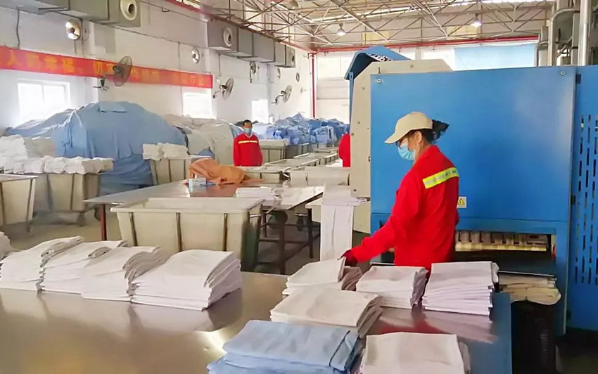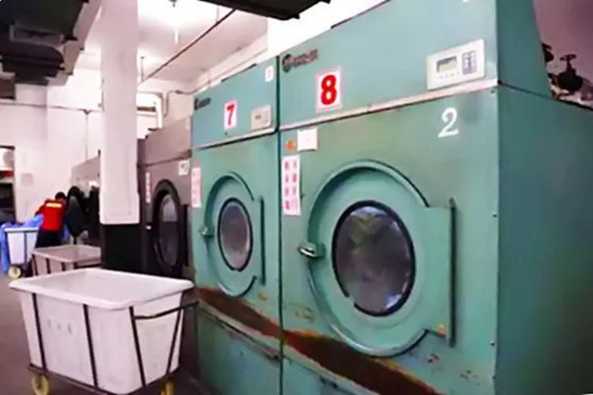 洗滌后的臥具會被放入烘干機內(nèi)烘干,然后工作人員將臥具用高溫熨燙機進行最后的處理:一方面熨燙臥具至平整,另一方面可以進一步高溫消毒。