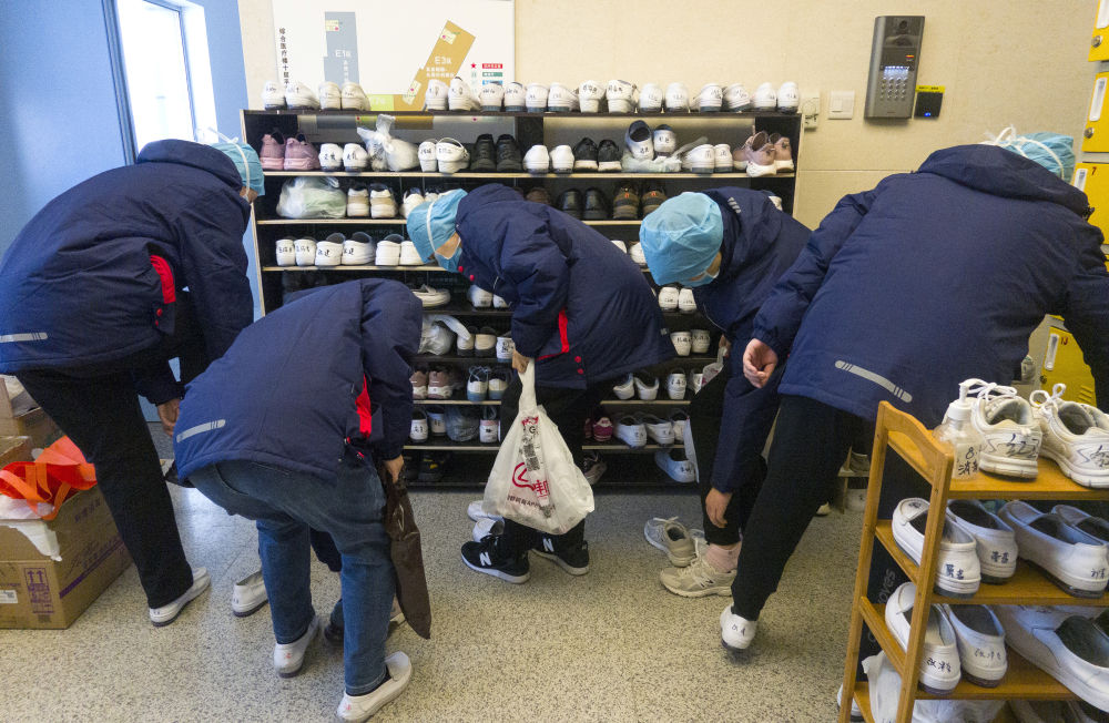 醫(yī)護(hù)人員下班后換鞋。