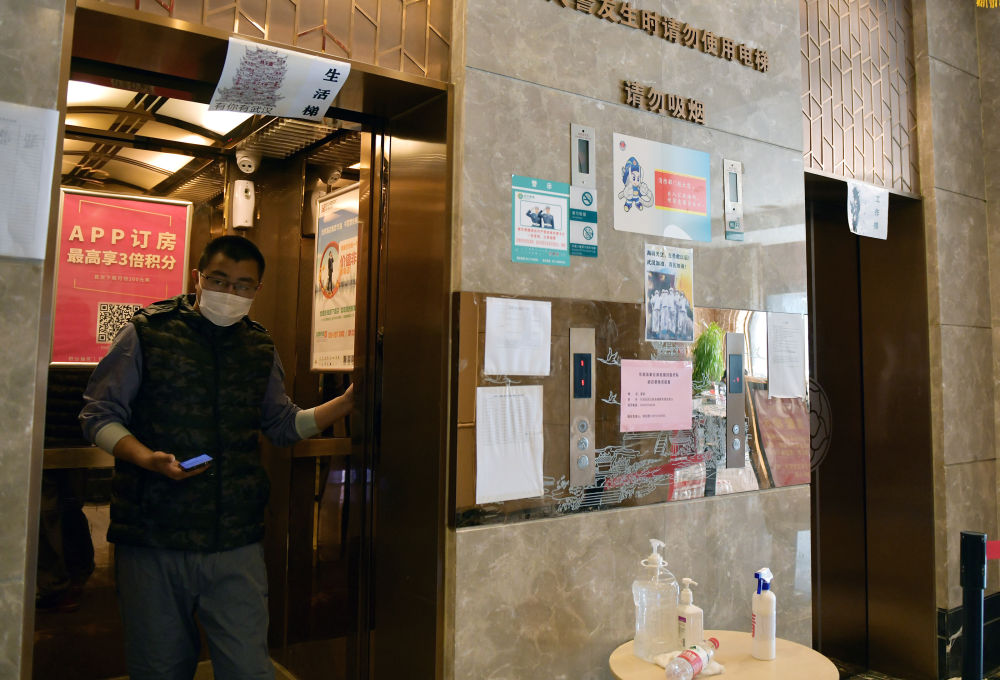 醫(yī)務(wù)人員對(duì)駐地酒店電梯按照生活駐地管理流程進(jìn)行功能劃分,工作、生活分開乘用。
