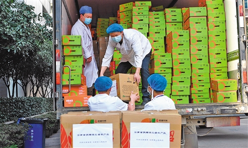 2月22日,湖北省武漢市江漢區(qū)武漢協(xié)和醫(yī)院,醫(yī)院工作人員在搬運(yùn)云南捐贈(zèng)的物資。各地捐贈(zèng)物資為武漢抗擊新冠肺炎疫情提供了物資保障。本報(bào)記者 高興貴攝