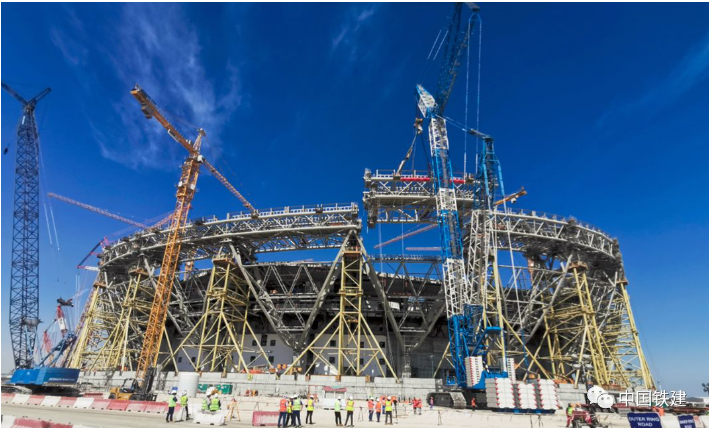 中國鐵建所屬鐵建國際攜手中小企業(yè)精誠合作共克時艱,帶動產業(yè)鏈發(fā)展。中國鐵建盧賽爾體育場項目是中國企業(yè)首次以設計施工總承包身份參建的世界足聯(lián)最高標準專業(yè)足球場,是目前中國企業(yè)在海外建造的規(guī)模最大、容納人數最多的專業(yè)體育場館。近日,在中國鐵建的協(xié)調、幫助下,精工鋼構集團復工后加快該項目建設進度,目前已逐步恢復正常產能。在卡塔爾盧賽爾體育場壓環(huán)吊裝期間,派出了20多名管理、大型構件吊裝、安裝技術專家增援該項目,陸續(xù)從國內派駐工人千余人次。