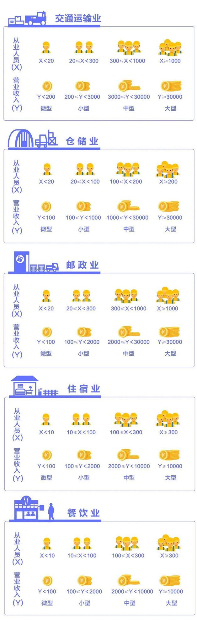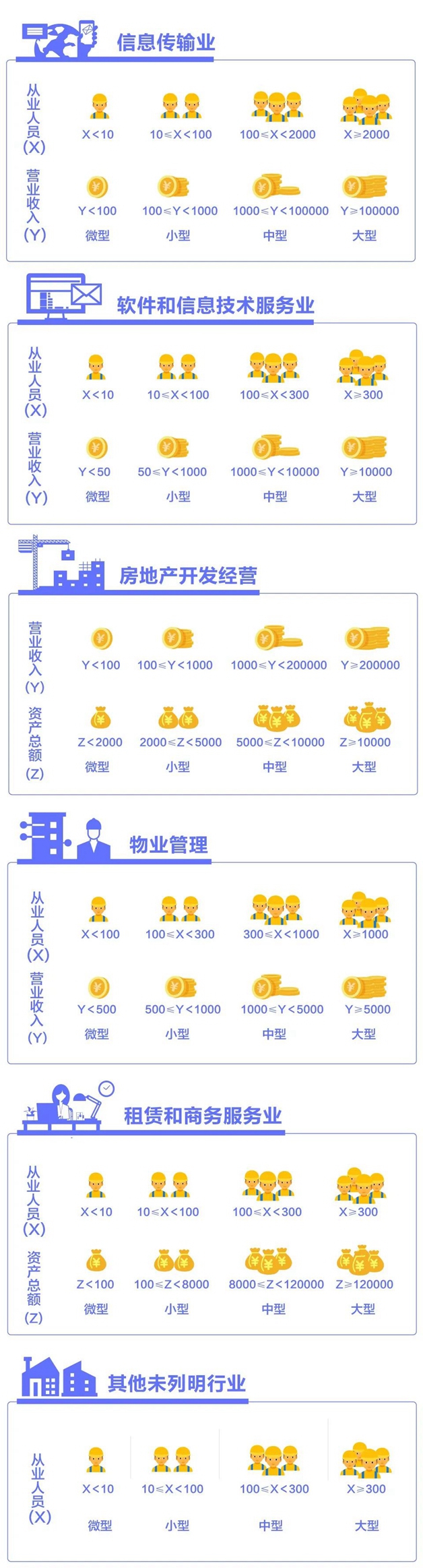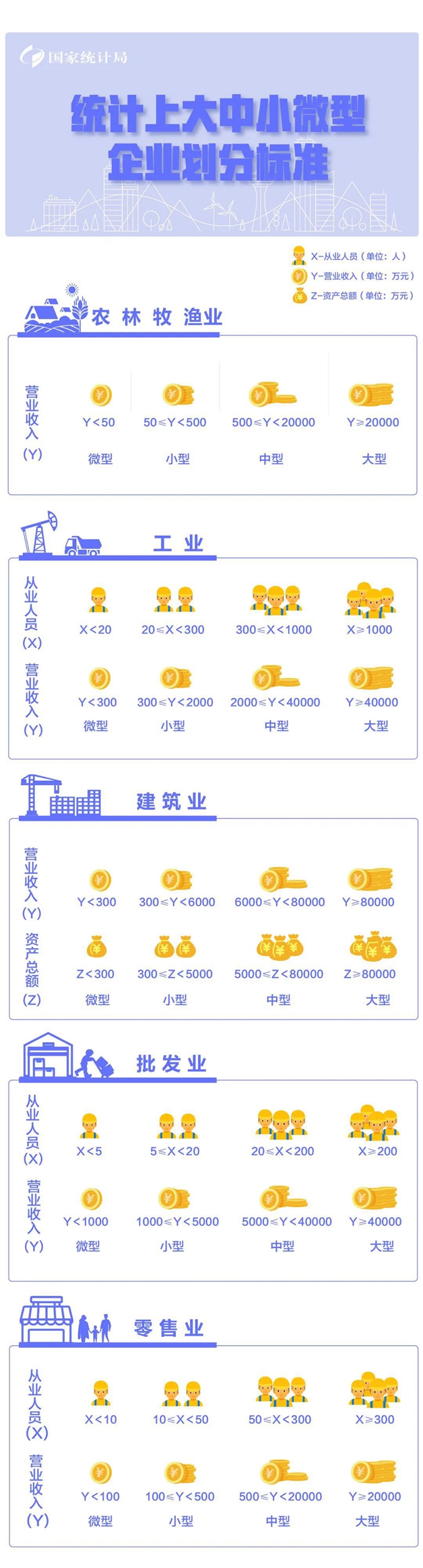 該辦法按照行業(yè)門類、大類、中類和組合類別,依據(jù)從業(yè)人員、營業(yè)收入、資產(chǎn)總額等指標或替代指標,將我國的企業(yè)劃分為大型、中型、小型、微型等四種類型。
