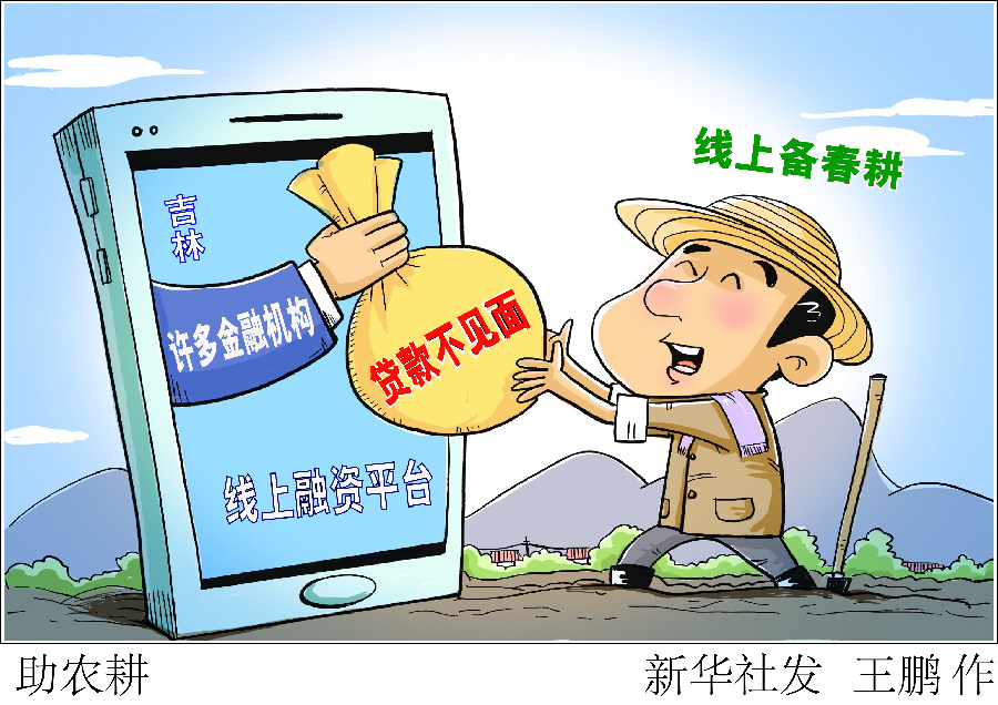 漫畫:助農(nóng)耕 一邊是為了疫情防控盡量少出門,一邊是農(nóng)時(shí)不等人,急需貸款流轉(zhuǎn)土地、購(gòu)買農(nóng)資,如此“兩難”怎么解?在吉林省,許多金融機(jī)構(gòu)建設(shè)了線上融資平臺(tái),農(nóng)民足不出戶就能用手機(jī)辦理貸款。 新華社發(fā) 王鵬 作