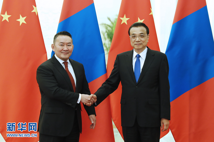 2月27日,國務院總理李克強在北京人民大會堂會見蒙古國總統(tǒng)巴特圖勒嘎。 新華社記者 劉彬 攝