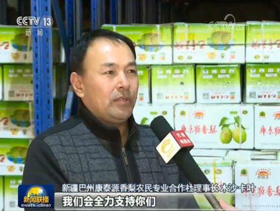 新疆巴州康泰源香梨農(nóng)民專(zhuān)業(yè)合作社理事長(zhǎng) 木沙?卡葉:我們與湖北心連心,我們會(huì)全力支持你們。