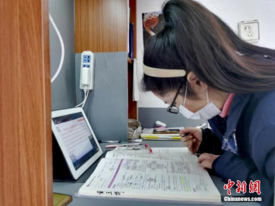 治愈出院患者在隔離點(diǎn)上網(wǎng)課。 安源 攝