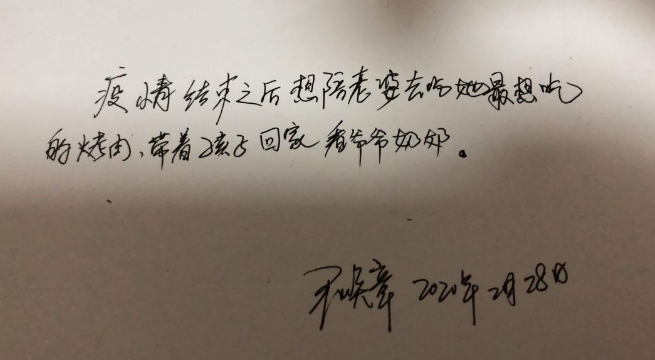 ——“你今天感覺怎么樣?你在那邊加油,然后早點回來嘛?!?/p>