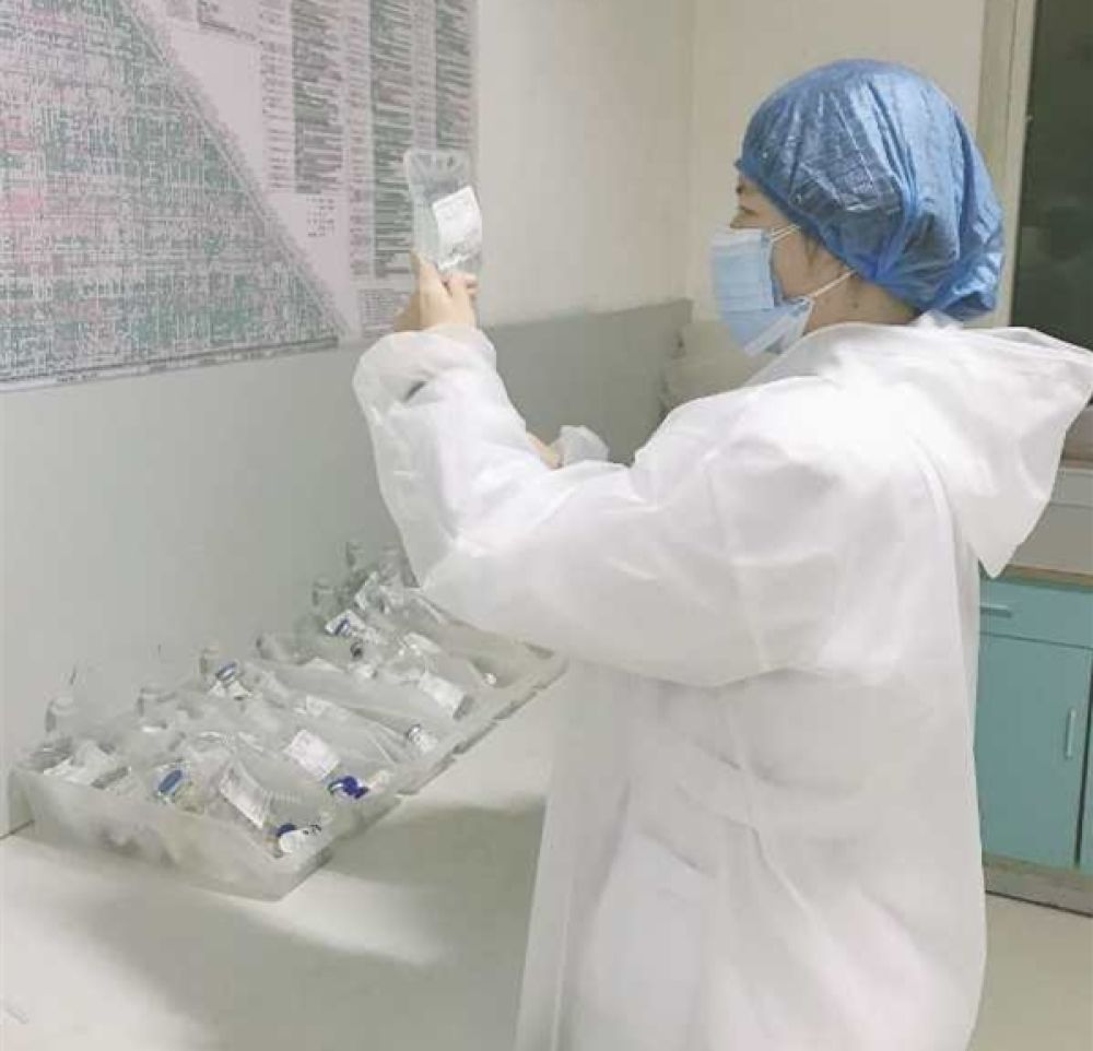 王瑞敏正在為患者準備輸液藥品。受訪者供圖