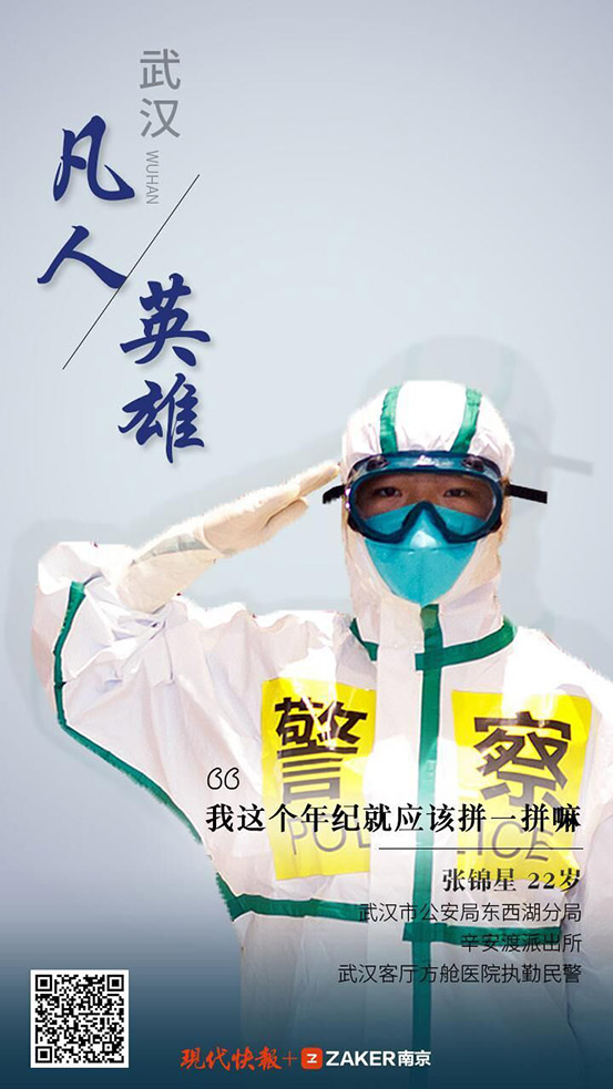 凌晨 2 點,結束了 6 小時夜班執(zhí)勤的張錦星走出方艙。每天工作 10 小時以上,吃住全在派出所 …… 剛過完 22 歲生日的張錦星,自武漢封城的那天起一直奮戰(zhàn)在防疫一線。2 月 6 日,接到方艙醫(yī)院投入使用的通知后,張錦星主動請戰(zhàn),進駐方艙核心區(qū)執(zhí)勤。" 我這個年紀就應該拼一拼嘛!"
