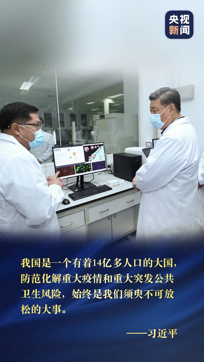 習近平總書記2日在北京考察新冠肺炎防控科研攻關工作,他強調,我國是一個有著14億多人口的大國,防范化解重大疫情和重大突發(fā)公共衛(wèi)生風險,始終是我們須臾不可放松的大事。