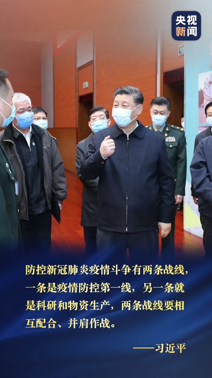 防控新冠肺炎疫情斗爭有兩條戰(zhàn)線,一條是疫情防控第一線,另一條就是科研和物資生產,兩條戰(zhàn)線要相互配合、并肩作戰(zhàn)。