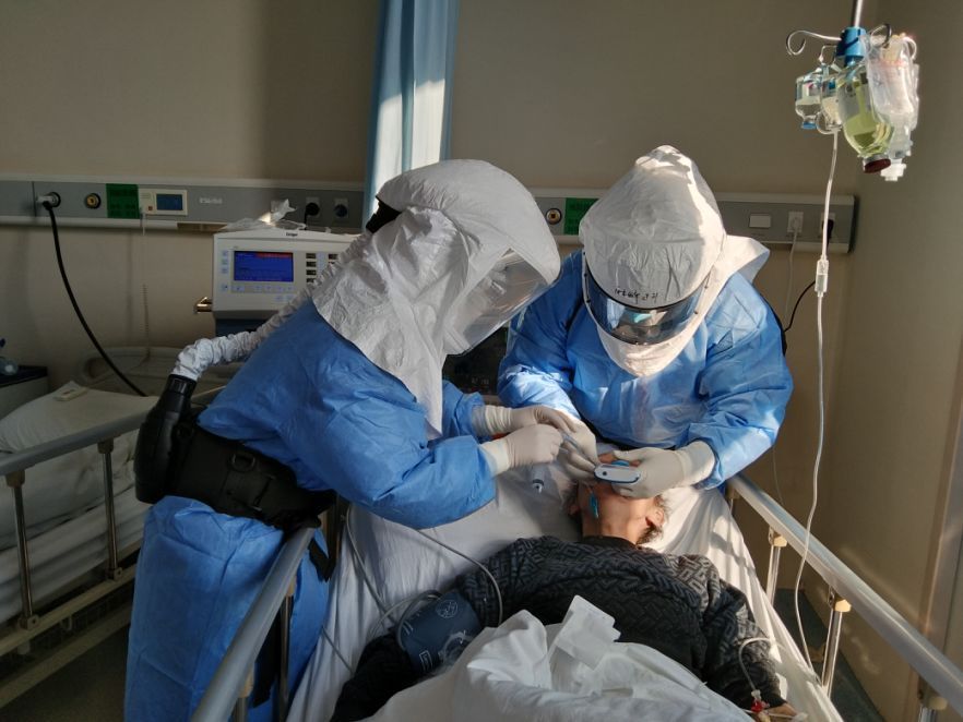 其次,因?yàn)樾鹿诜窝椎闹匕Y病人耐受時(shí)間短,對(duì)醫(yī)護(hù)人員也必須減少暴露時(shí)間,平常3-5分鐘的插管時(shí)間,現(xiàn)在必須在兩分鐘內(nèi)完成。看到病人痛苦無助的樣子,凌肯沒有時(shí)間害怕,在陳向東的指導(dǎo)下,他迅速冷靜,與同事兩人,一個(gè)推麻藥,一個(gè)負(fù)責(zé)插管。整個(gè)過程麻利干脆,用時(shí)90秒。除去60秒打麻藥的過程,真正插管只用了30秒。