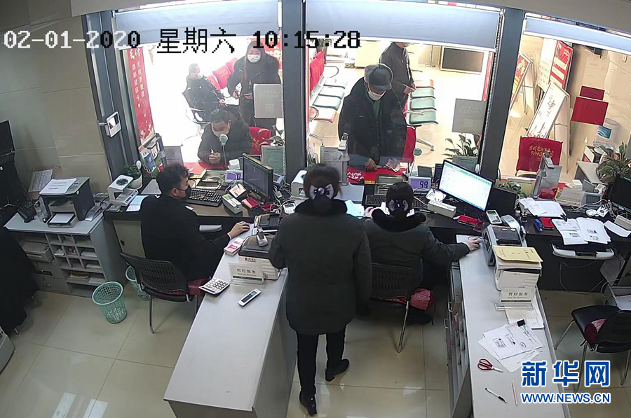 2月1日,在江蘇省宿遷市郵政儲蓄銀行泗洪上塘鎮(zhèn)支行,王玉齊老人以“退伍老兵”的名義向武漢紅十字會(huì)捐款9900元。 新華社發(fā)(截屏照片)