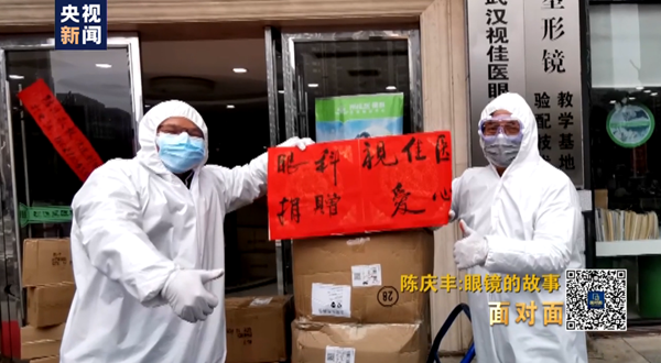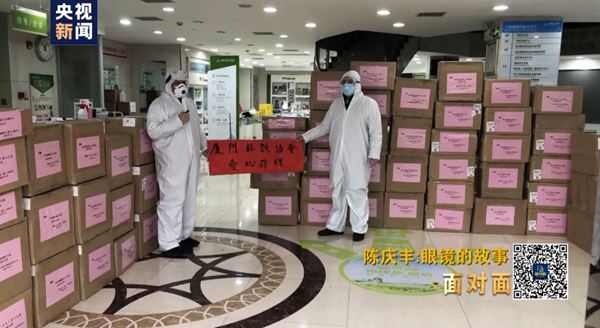 陳慶豐:還好,我們在農(nóng)村長大的人什么苦都吃過,你會發(fā)現(xiàn)醫(yī)學(xué)專業(yè)畢業(yè)的人幾乎各個都戴眼鏡,來支援武漢的好幾萬醫(yī)護(hù)人員總會有一些人發(fā)生眼鏡壞了的事,結(jié)果我這里成了一個倒金字塔,那么大的需求落到我這個點(diǎn)上來了。很多年以后我們再回憶今天為疫情做了什么,我付出了我自己心安。因?yàn)槲铱吹浆F(xiàn)在社會很多人,就是指責(zé),但是他沒有為自己指責(zé)的內(nèi)容負(fù)起責(zé)任來,他總有一天會感到內(nèi)疚的,他有一天會后悔的。