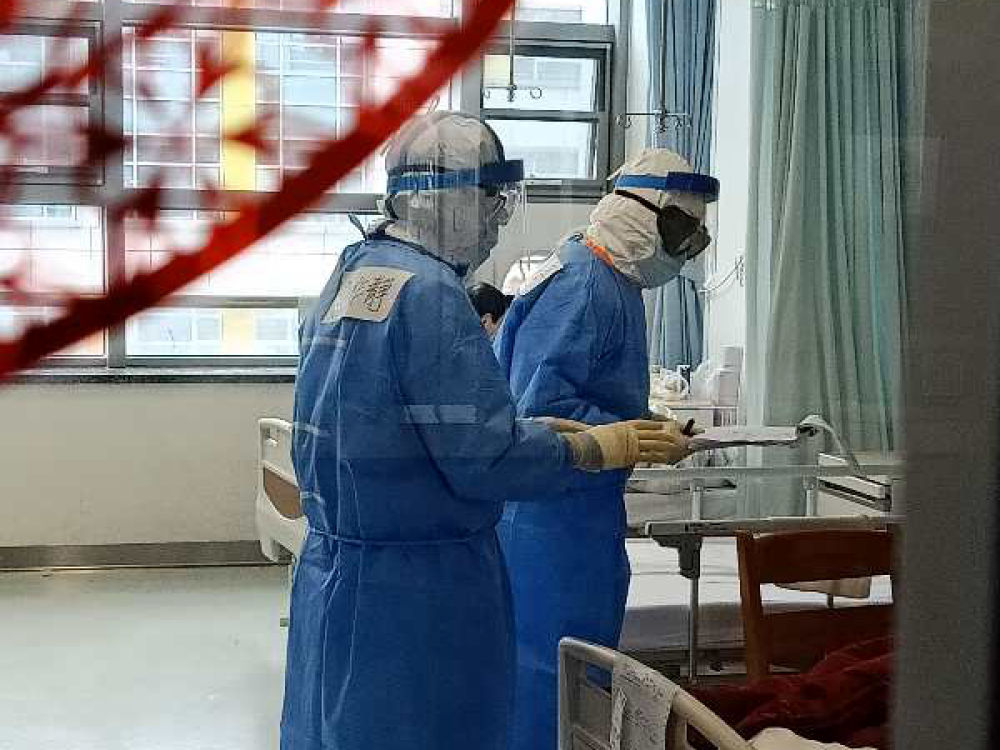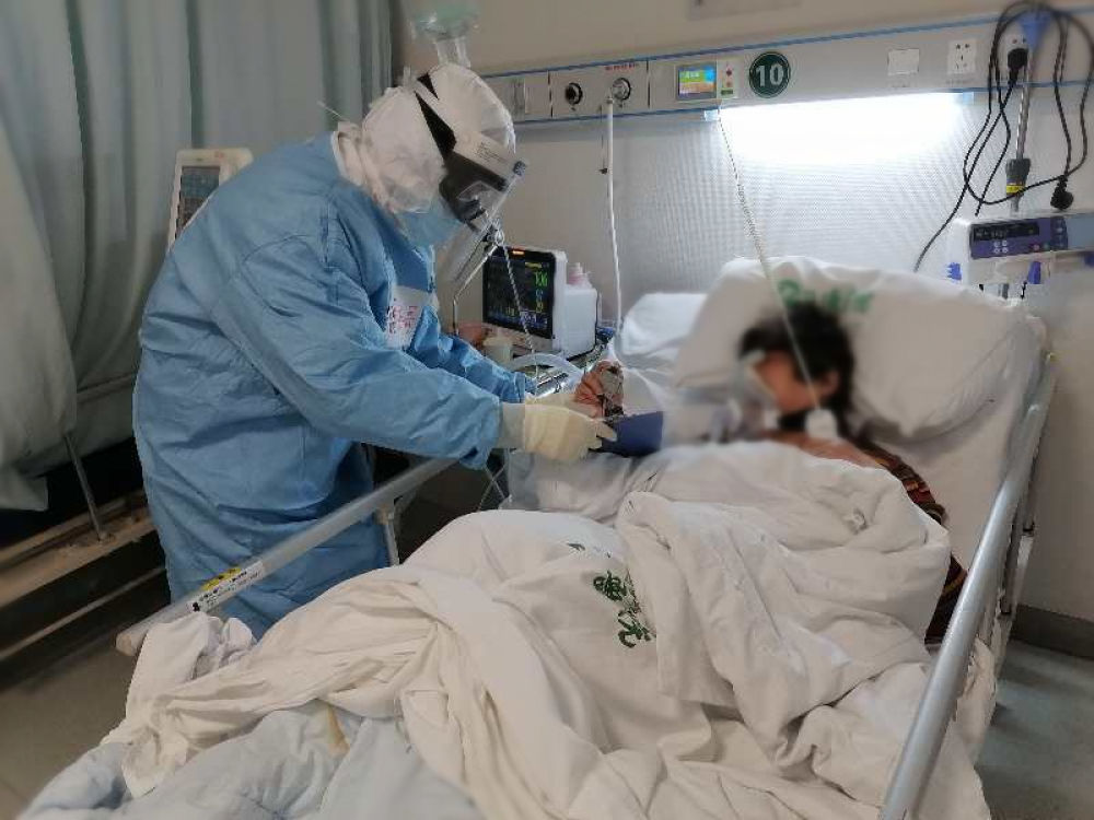 圖為北醫(yī)三院援湖北醫(yī)療隊劉慧強在工作。