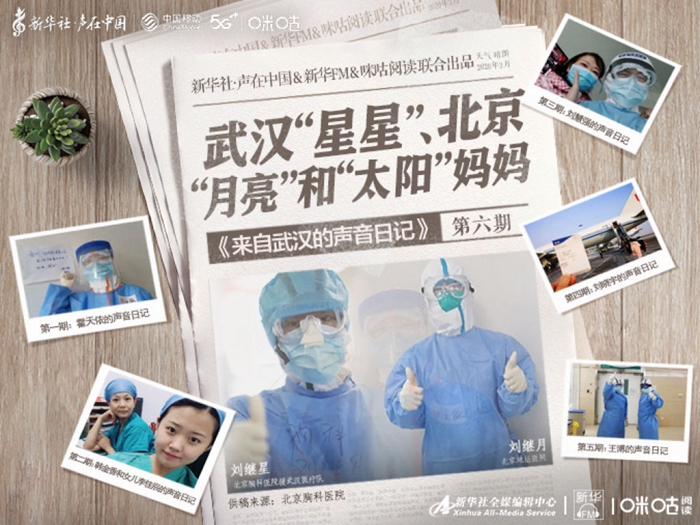 點(diǎn)擊收聽來自武漢的聲音日記第六期。今天講述這樣的一家人。哥哥叫劉繼星,是北京胸科醫(yī)院援武漢醫(yī)療隊成員,妹妹叫劉繼月,奮戰(zhàn)在北京地壇醫(yī)院ICU病房。而他們的媽媽也曾是醫(yī)務(wù)人員,退休前就職于北京地壇醫(yī)院順義院區(qū),參加過抗擊非典疫情。一起來聽他們的故事。
