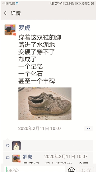 第二天,同為重癥醫(yī)學(xué)一科軍醫(yī)的羅虎聽聞戰(zhàn)友的“趣聞”后,專門為那雙已經(jīng)風(fēng)干的42碼迷彩鞋拍了一張照片,還配詩一首。