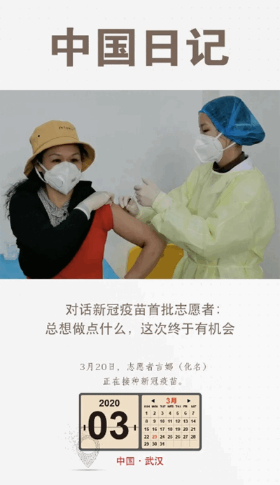 “壓根沒考慮危不危險(xiǎn)的事情,”吉娜說,“原因很簡單,我之前就一直非常關(guān)注疫苗的研發(fā),比較了解相關(guān)情況,盼星星盼月似的,盼著疫苗能早日成功?!币咔榘l(fā)生后,吉娜一家響應(yīng)政府號召,一直居家隔離,密切關(guān)注著疫情的發(fā)展態(tài)勢,并希望能為武漢、為疫情防控做點(diǎn)力所能及的事情。