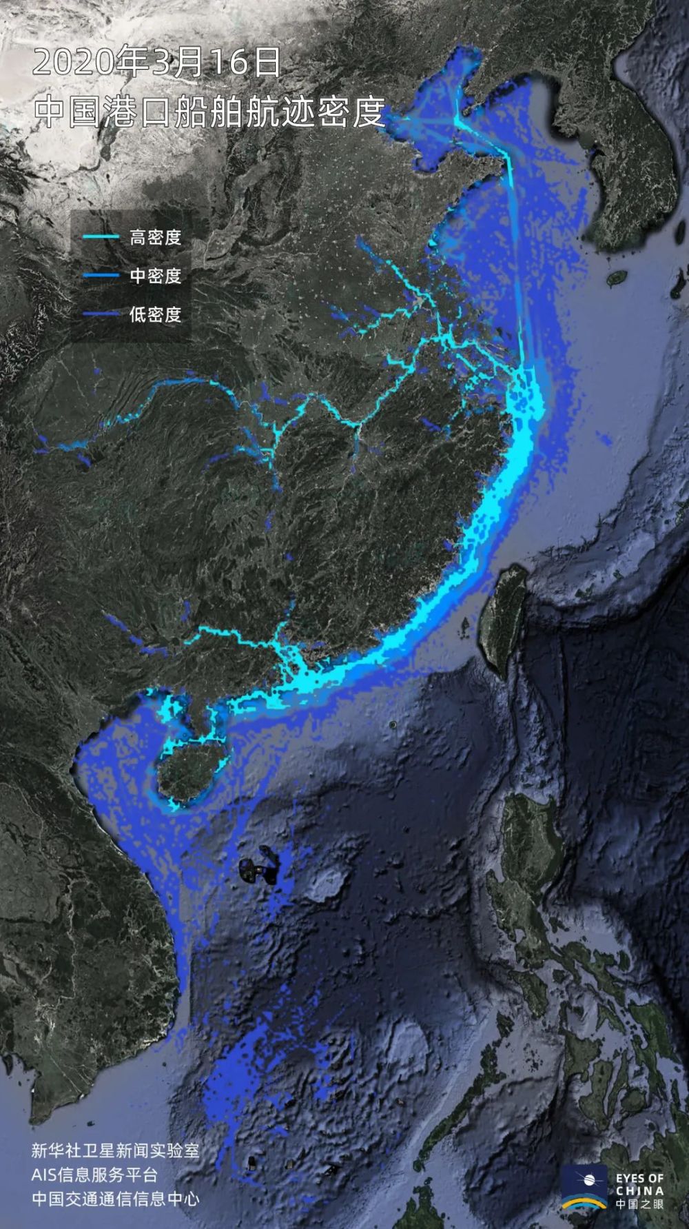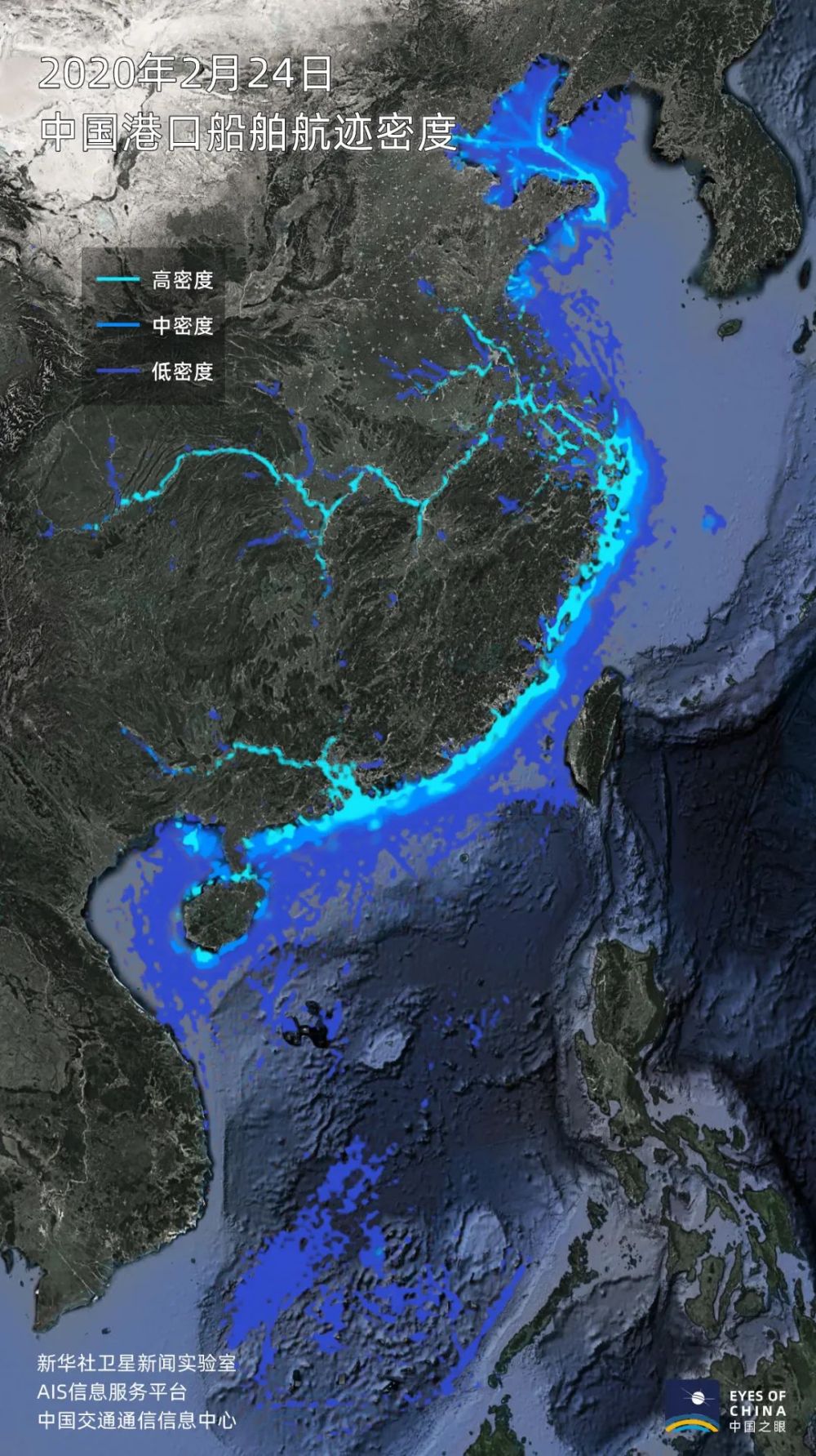 根據(jù)通信衛(wèi)星等方式獲得的船舶信息,中國沿海及內河的船舶活躍度正在快速提升。