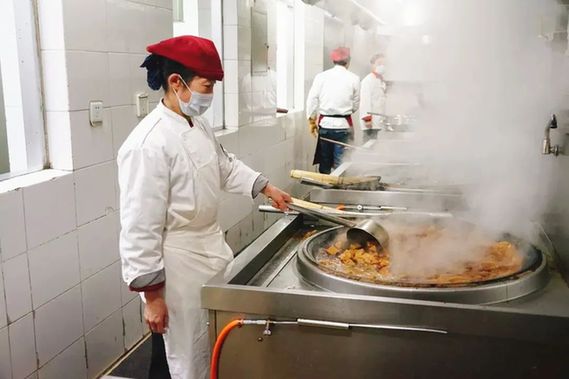 伙食團(tuán)的師傅們凌晨4時(shí)進(jìn)入后廚,一直要忙到晚上八九點(diǎn)。從準(zhǔn)備食材、煎炒烹炸,到整理餐具、收拾擺臺(tái);從面食米飯、果蔬葷素,到保證菜品豐富多樣,餐餐可口……每天要接待1000多人次分7批次就餐,確保調(diào)度員隨時(shí)吃上熱乎乎的飯菜。