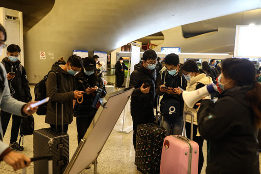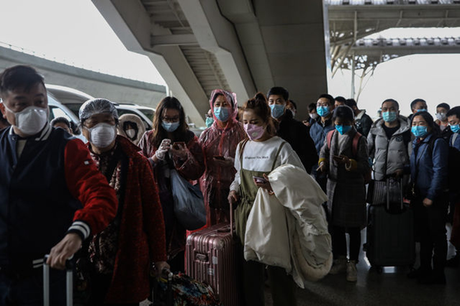3月28日,武漢火車站,從廣州南到武漢的G1112次列車乘客排隊出站。記者 趙迪/攝