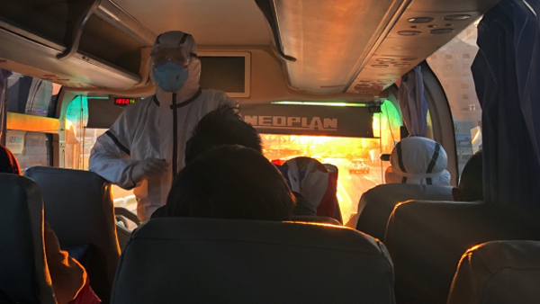 5、出?。?3:35,專列到達信陽東站,這是駛出湖北省后的第一站。對于車廂內(nèi)的很多人而言,這是他們自湖北各地“封城”以來的首次出省。