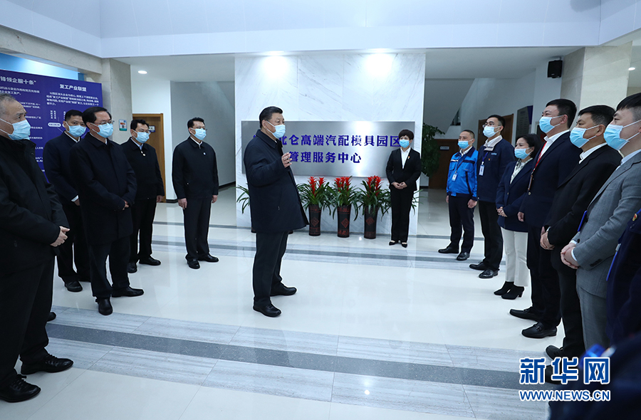 3月29日,中共中央總書記、國家主席、中央軍委主席習(xí)近平在浙江考察調(diào)研。這是習(xí)近平在寧波北侖大碶高端汽配模具園區(qū)了解企業(yè)復(fù)工復(fù)產(chǎn)情況。 新華社記者 申宏 攝