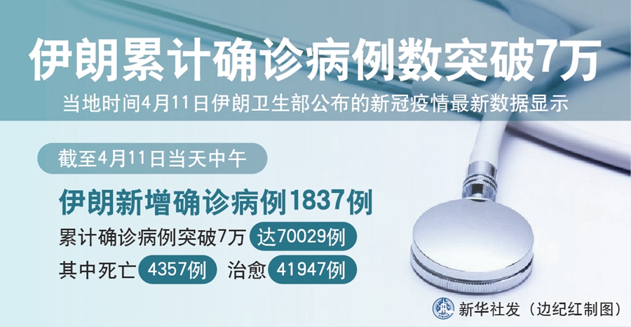 新華社德黑蘭4月11日電(記者陳霖)伊朗衛(wèi)生部11日公布的新冠疫情最新數(shù)據(jù)顯示,截至當(dāng)天中午,伊朗新增確診病例1837例,累計確診病例突破7萬,達70029例,其中死亡4357例,重癥3987例,治愈41947例。