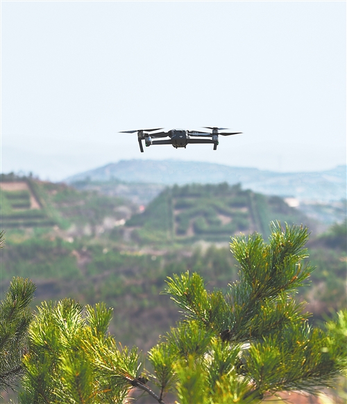 無人機(jī)在山西太原杏花嶺區(qū)牛駝生態(tài)林區(qū)護(hù)林防火巡查。 新華社發(fā)