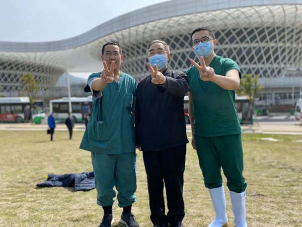 江夏方艙醫(yī)院休艙時(shí),張伯禮和醫(yī)護(hù)人員合影