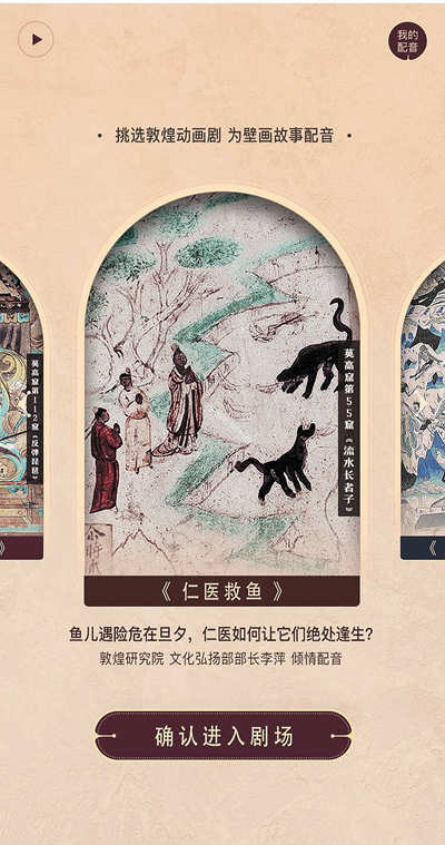自1月24日起,敦煌莫高窟暫停開放。一個(gè)月之后,“云游敦煌”小程序于2月20日上線了。用戶將手指劃過屏幕,就能看到石窟中的壁畫,每日都能收到不同的“私人定制”壁畫故事,搭配一句與壁畫有關(guān)的箴言。