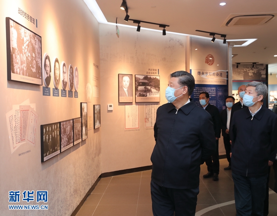 4月20日至23日,中共中央總書記、國家主席、中央軍委主席習(xí)近平在陜西考察。這是4月22日,習(xí)近平在西安交通大學(xué)交大西遷博物館參觀。 新華社記者 鞠鵬 攝