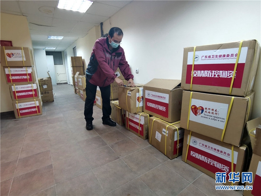 3月28日,在塞爾維亞首都貝爾格萊德的中國(guó)赴塞爾維亞抗疫醫(yī)療專家組駐地,專家組成員龍其穗整理清點(diǎn)物資,為第二天使用的防護(hù)用具做好準(zhǔn)備。這是他每晚必做的工作。新華社發(fā)(專家組供圖)