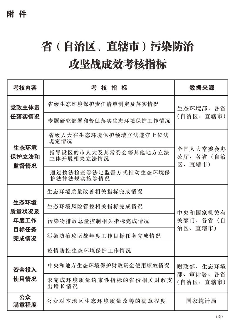 附件:?。ㄗ灾螀^(qū)、直轄市)污染防治攻堅(jiān)戰(zhàn)成效考核指標(biāo)